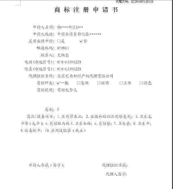 8、商標,此處要求申請人粘貼商標圖樣,商標尺寸大小應按申請書的要求辦理。