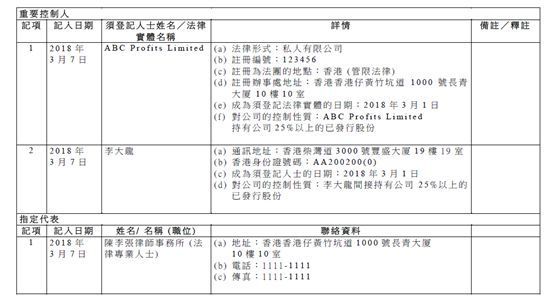 乙公司只有一名法團股東,為ABC Profits Limited,而該法團由李實際擁有,根據重要控制人和最終受益人的判斷原則,李同樣為乙公司重要控制人,即為需登記人士。